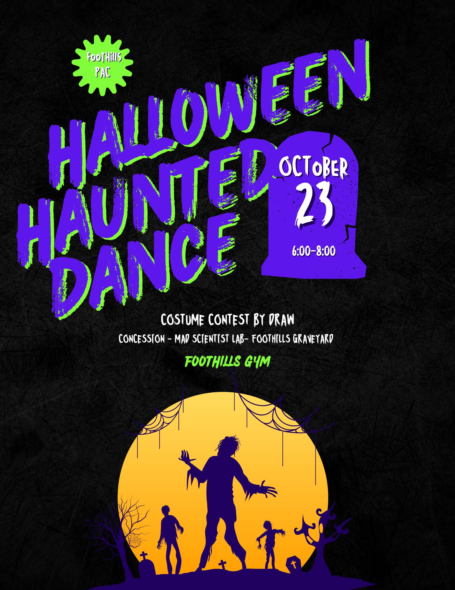 Nov 23rd - PAC Halloween Haunted Dance Come prepared for lots of fun, including a costume contest - winner by draw. Cost is $5.00/child, $10/family. Must have an adult to attend. No weapons with your costume please.